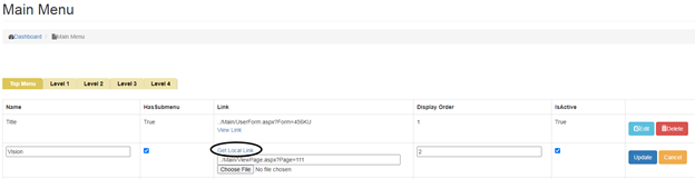 - Select Feedback in the Select Page drop down menu and select Feedback.aspx from Possible links