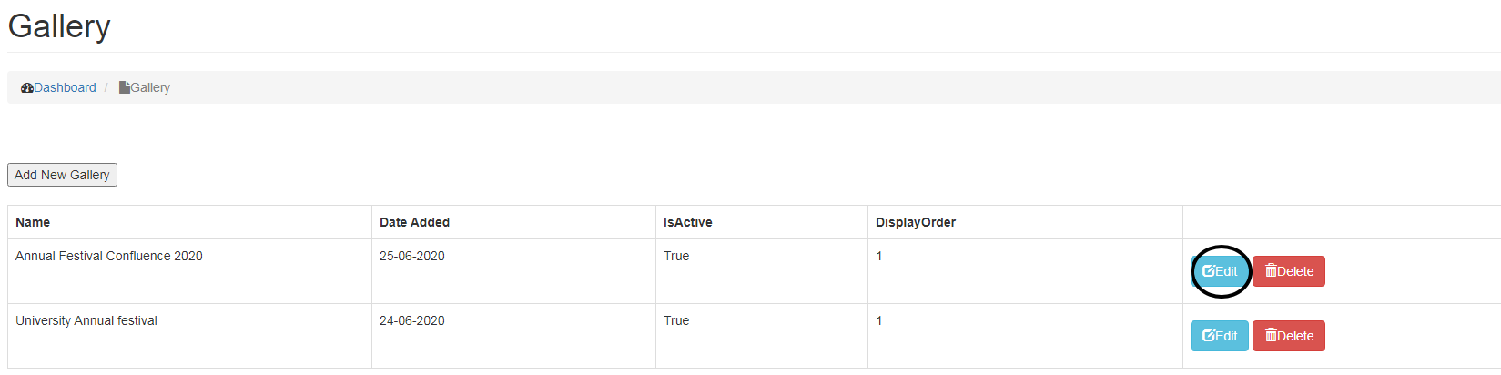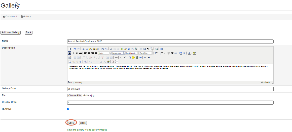 Once all the details are entered, click on Save button to save the newly created Gallery in Photo Gallery Page of the website.